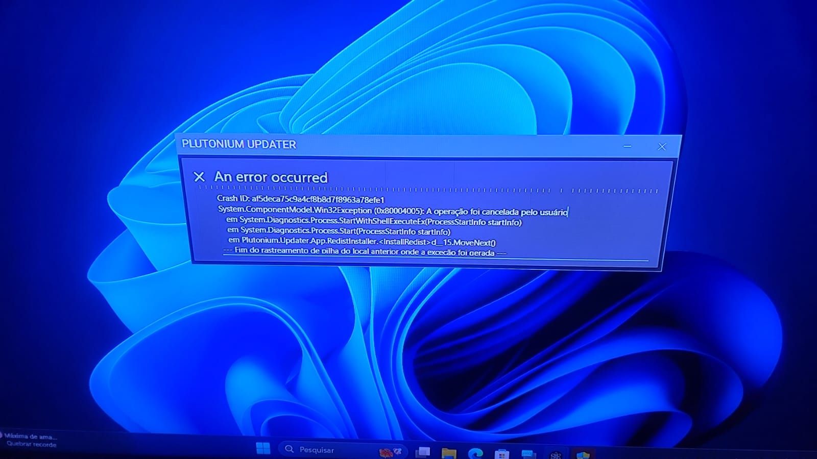 Plutonium.Updater.Core.Models.UpdateException: Failed to update file storage/iw5/zone/mp_favela.ff ---> System.Net.WebException: Exceção durante uma solicitação do WebClient. ---> System.IO.IOException: Falha na operação de descriptografia, consulte a exceção interna. ---> System.ComponentModel.Win32Exception: Os dados especificados não puderam ser decodificados