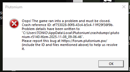 Request support for the Plutonium T6 client, please wait at-least 1 day for a reply, it can get busy. The community is free to try to help in any thread.
