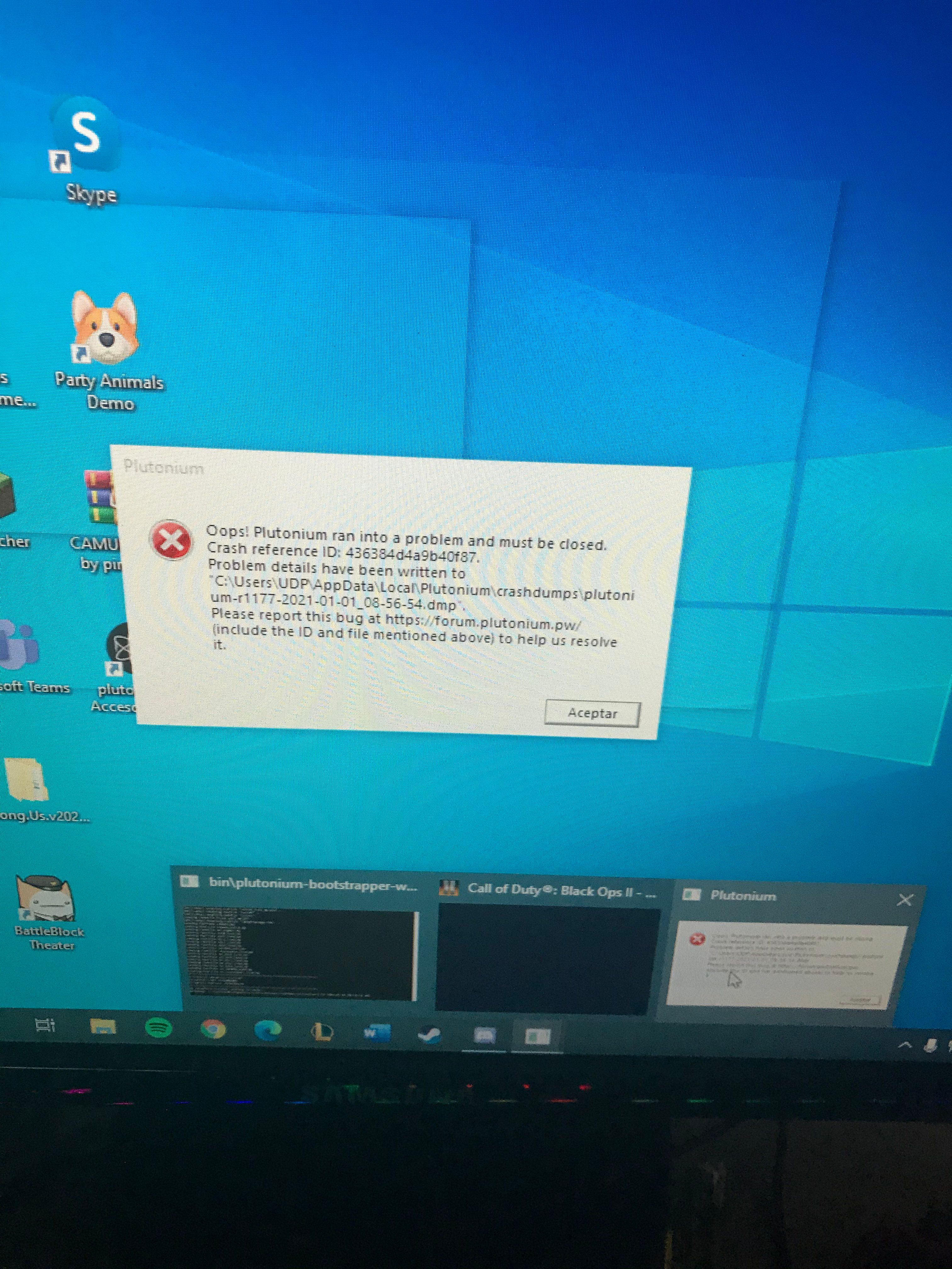 "Oops! Plutonium ran into a problem and must be closed."