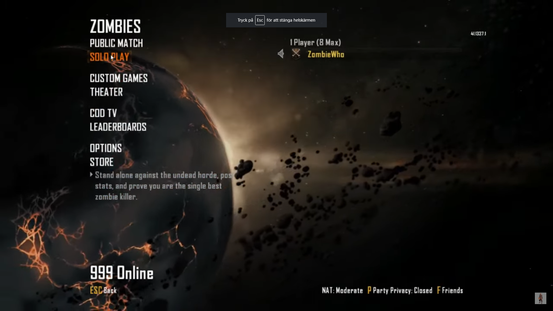 The biggest problem is that for some reason I don't have custom games for zombies just like shown under this picture. You may be wondering why I would need it and that is because I want to play with a friend alone without any modified maps and there was a method I found on youtube that worked for everyone apart from me since I can't even use custom games..