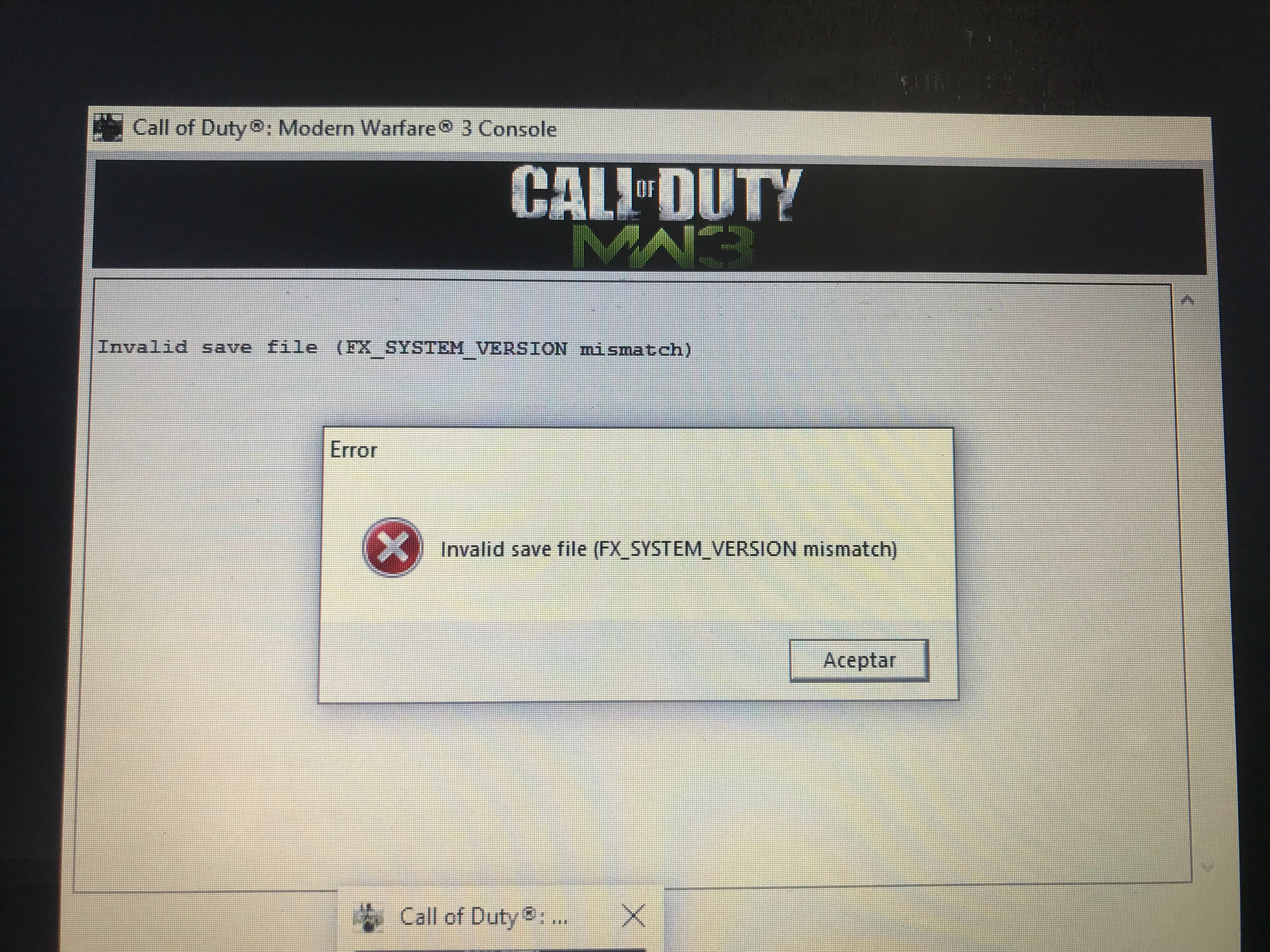 estoy jugando el modo campaña cuando de repente la pantalla se pone negra y me aparece la siguiente leyenda
