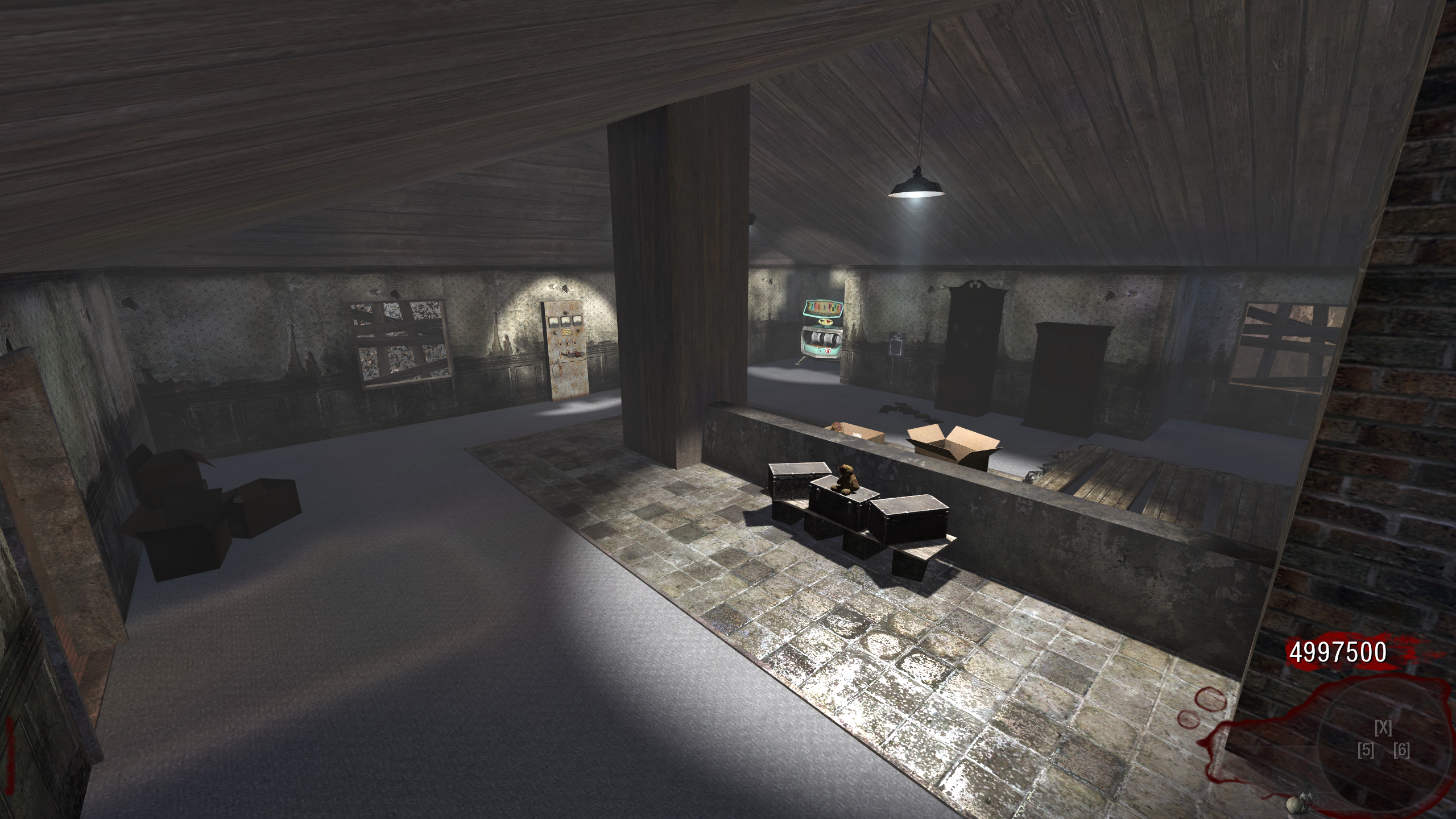 this is a very good remake i only have a couple little nit picks, you should have the starting pistol be the makarov just like how it is on the DS version and as to not cause any issues just copy over the damage value of the 1911, and the upgraded version can just be the dual wielded version but explosive like normal, i understand this is probably an artistic choice but it would probably better to keep the original round change music and the voice effects for drops like on DS, the car in the second room should be a supply truck and not a car and also the zombie models are not supposed to be german, they're supposed to be russian but i understand that being an issue outside of your control so i don't mind that. thats everything i noticed but everything else is perfect loved the finer details like the attic actually being filled with stuff instead of you leaving it empty. good job on the mod but those are the improvements i'd made.