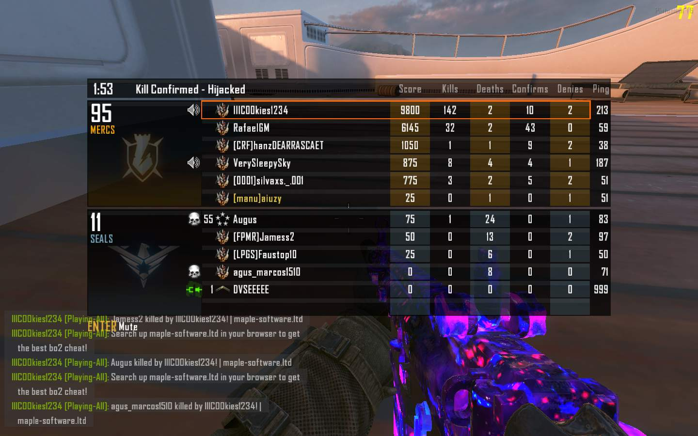 Acabei de encontrar um cheater na minha partida. Tirem esse cancer do plutonium no geral. É perigoso até pra outros servidores. Ele é provavelmente do United States e ta usando hack em servidor BR. O nick dele é IIICOOKies1234