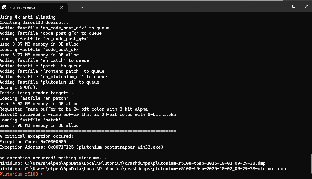 hello I have had problems with bo1 plutonium well my problem is that I start bo1 even if it is multiplayer or zombies I get the same error it should be noted that it is the only game that gives me problems important information I downloaded it by torrent I do not have it on steam the problem is that I get an error when I try to start it I have searched thousands of solutions I have seen millions of forums sites videos all kinds of solutions I have tried and I have not achieved it if you can help me I would appreciate it from the bottom of my heart I attach images so you can see what the error is there are people who have had the same thing happen to them but they do not respond if an administrator cannot talk about the subject of the game crack I can gladly provide you with my gmail so that you can contact me so I can solve it if it is not necessary there is no problem but I need solutions please thank you cordial greetings take care!