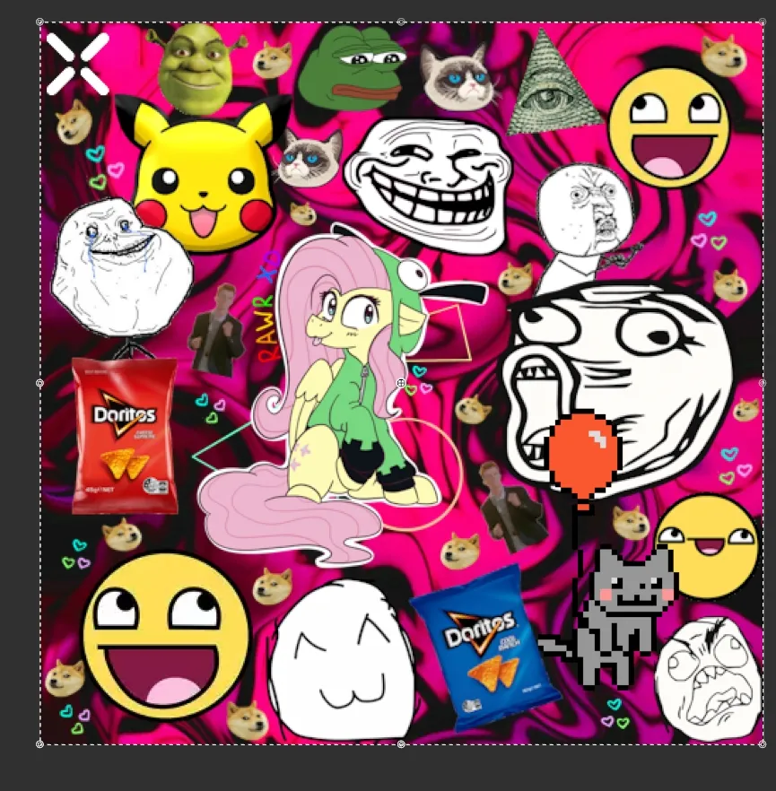 This skin was my first time messing with tiled patterns! i love the way it turned out, there is all sorts of memes and cute stuff all over this skin! Shrek, Doritos, Nyan cat, Awesome face, Fluttgirshy, Pikachu, Doge, and much more!